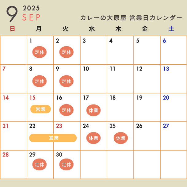 お問い合わせはお電話でお気軽に「カレーの大原屋」まで